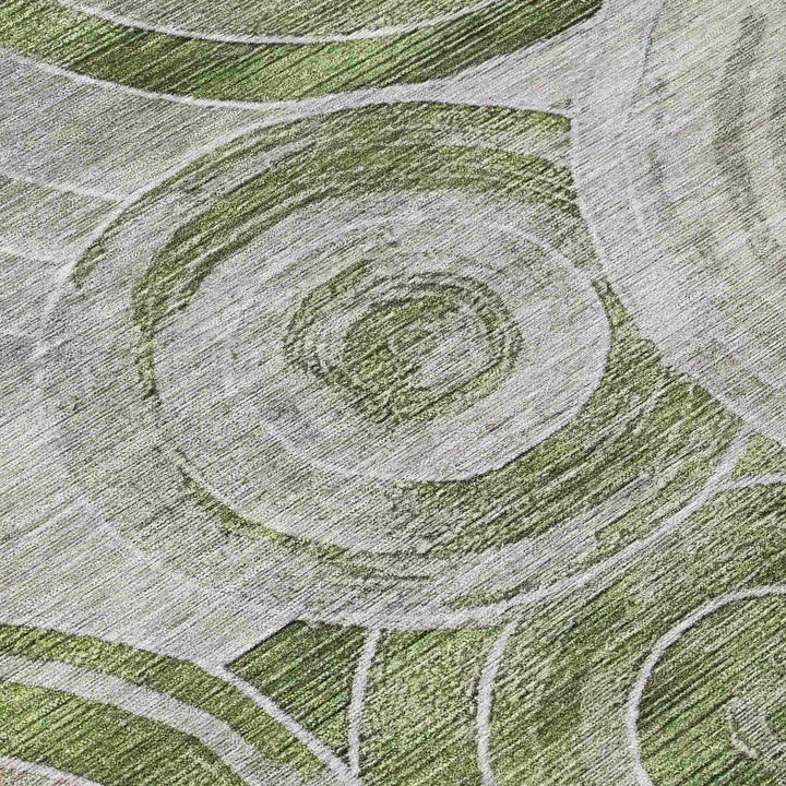 The Jaelain Aloe Washable Rug is designed to bring a touch of elegance and practicality to any space. Its unique circles within circles pattern not only captures attention but also creates a dynamic sense of movement, adding texture and depth to your environment. Its geometric design is perfect for transitional spaces that blend modern and classic styles. Made from durable polyester, this rug is ideal for both indoor and outdoor use, making it a versatile addition to your home decor. The Aloe color complements a range of interiors, providing a refreshing and stylish look.