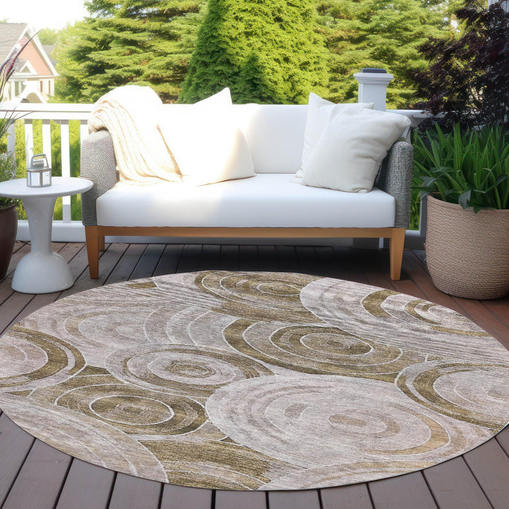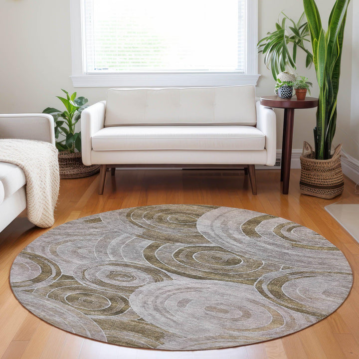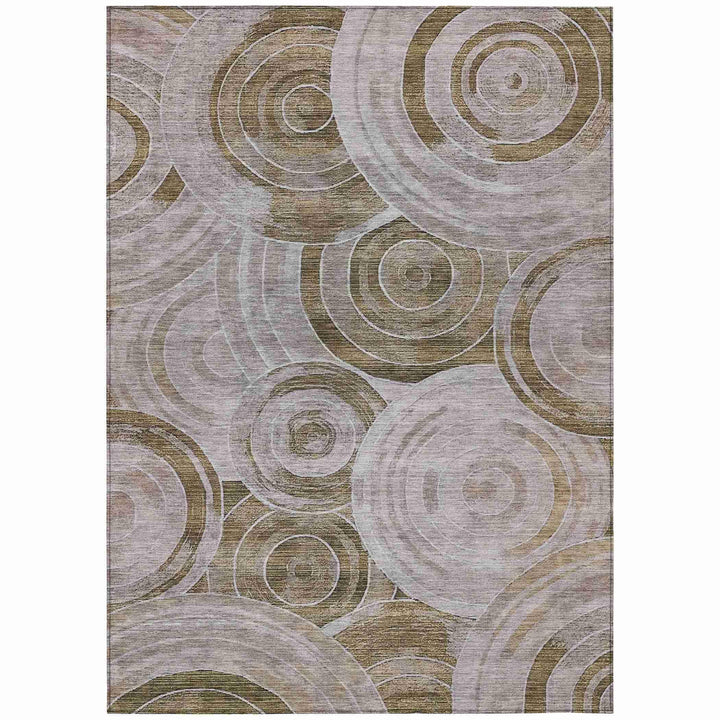 The Jaelain Brown Washable Rug is crafted to add a touch of elegance and practicality to any space. Its unique pattern of circles within circles not only creates a visually appealing design but also adds a sense of movement and depth. This rug is perfect for those who appreciate a blend of modern and classic styles, making it an excellent choice for transitional spaces. Its rich brown color complements a variety of décor themes, providing a warm and inviting atmosphere.