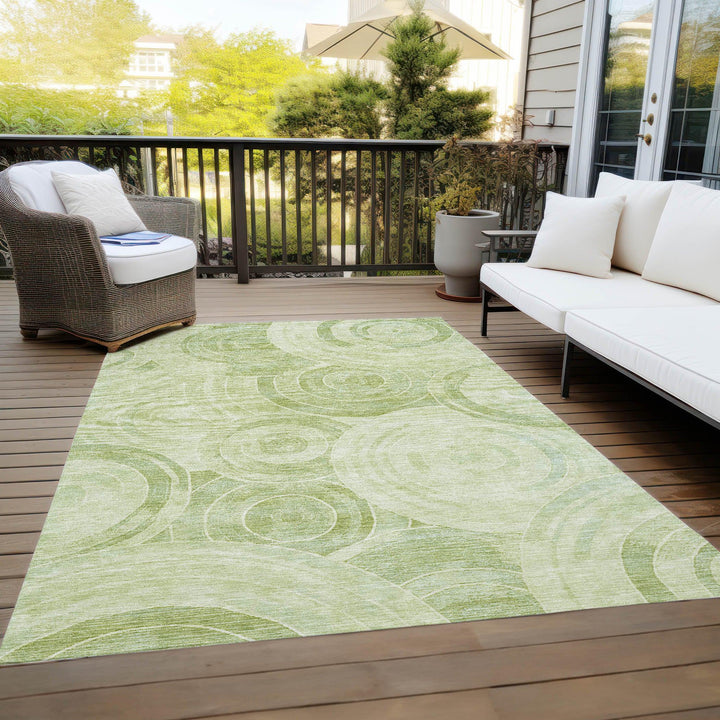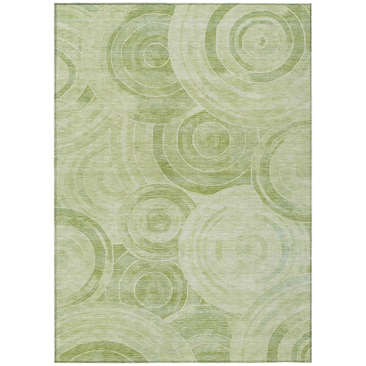 Enhance your living space with a touch of elegance and functionality with the Jaelain Green Washable Indoor-Outdoor Rug. This rug's circles within circles pattern creates a sense of movement and flow, while maintaining a structured geometric design. The layered circular shapes bring texture and depth, making it a versatile piece for transitional spaces that balance modern and classic elements. Its vibrant green hue adds a refreshing pop of color that complements a variety of decor styles.