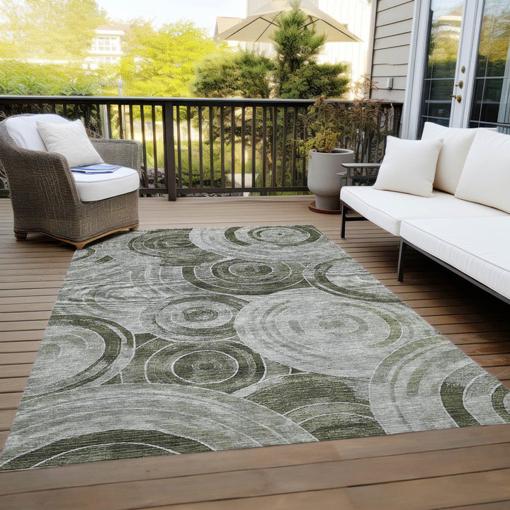 The Jaelain Taupe Washable Rug is a striking addition to any living space, indoors or out. Its geometric pattern, featuring circles within circles, creates a dynamic yet structured design that adds depth and texture. This versatile piece seamlessly blends modern and classic elements, making it ideal for transitional spaces. Crafted with care, the rug is UV-stabilized to withstand the elements, ensuring durability even in outdoor settings. Its ultra-thin construction is not only stylish but also practical, allowing for easy cleaning and maintenance. A perfect choice for busy households, this rug stands up to the demands of family life and pets.