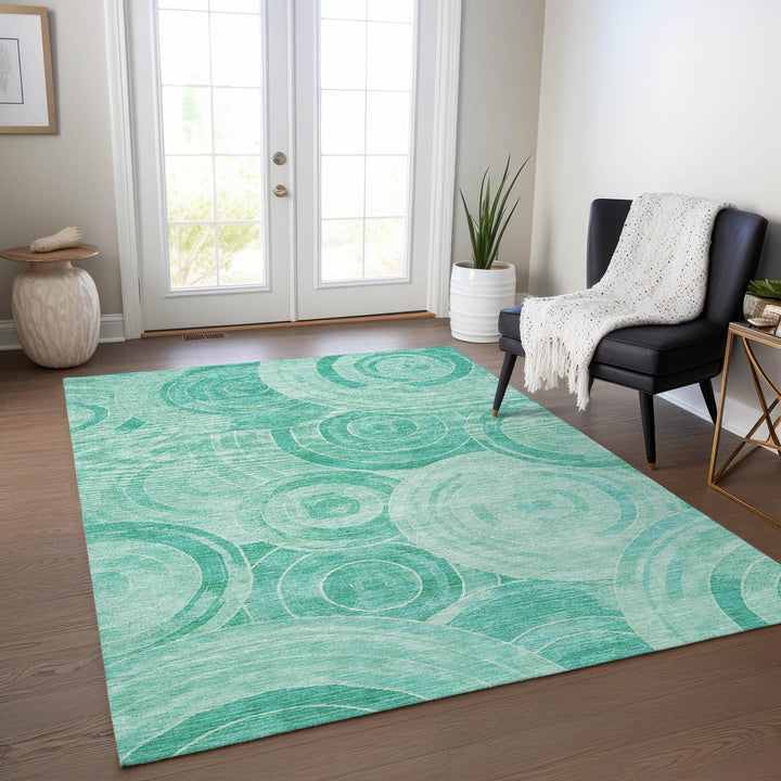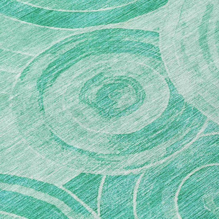 Bring a touch of elegance and practicality to your home with this exquisite teal washable rug. Its intricate circles within circles pattern not only adds movement and flow but also introduces a structured geometric design that will enhance any room. The layered circular shapes create texture and depth, making it ideal for spaces that blend modern and classic styles. This rug's versatile design fits perfectly in both indoor and outdoor settings, making it a stylish and functional addition to any home.