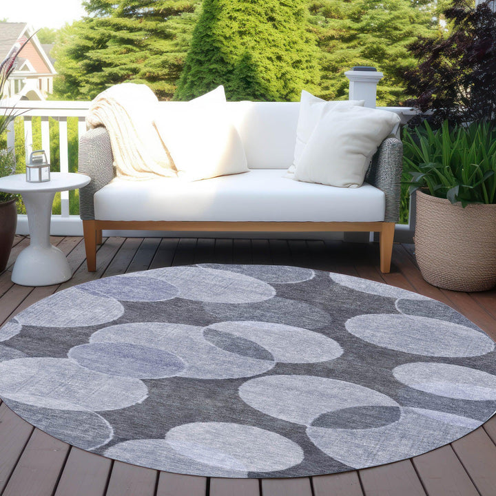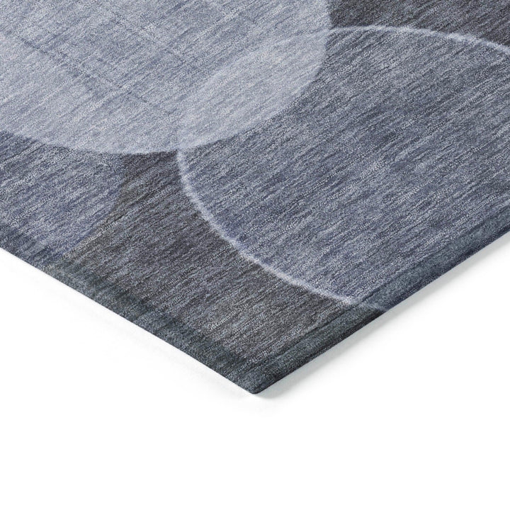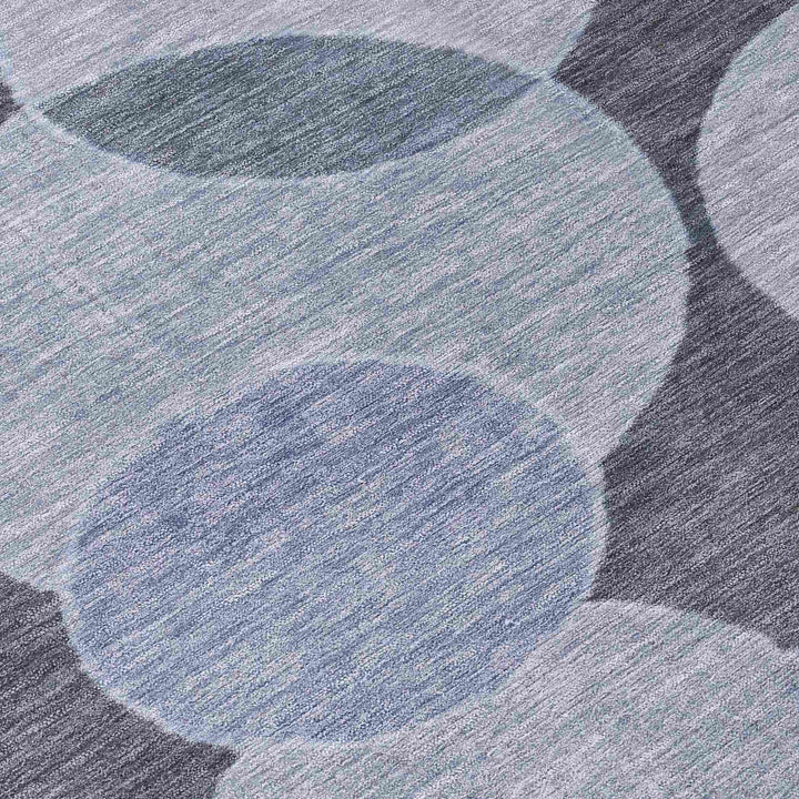 The Jaelanor Blue Washable Rug brings a touch of elegance to any space with its captivating geometric pattern. Large circles overlay smaller ones, creating a dynamic design that offers both texture and movement. This unique pattern seamlessly blends into transitional interiors, effortlessly merging modern and traditional elements. Ideal for both indoor and outdoor settings, this rug is UV-stabilized, adding durability against sunlight exposure. Its ultra-thin construction not only enhances its sleek look but also makes it exceptionally easy to clean and maintain.