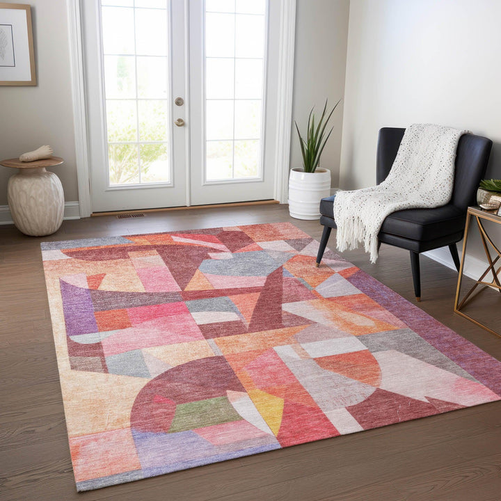 The Jaelira Orange Washable Rug is an eye-catching addition to any space. Its abstract pattern, crafted from a mix of multi-shaped elements, brings a lively yet sophisticated touch to your decor. The design plays with various shapes, creating texture and movement that make the rug a focal point in any room. Perfectly blending into both modern and traditional decor, this transitional style rug is versatile enough for indoor and outdoor use. Whether you place it in your living room or on your patio, it effortlessly enhances the surroundings.