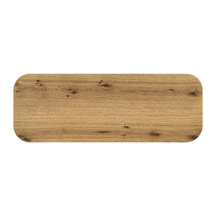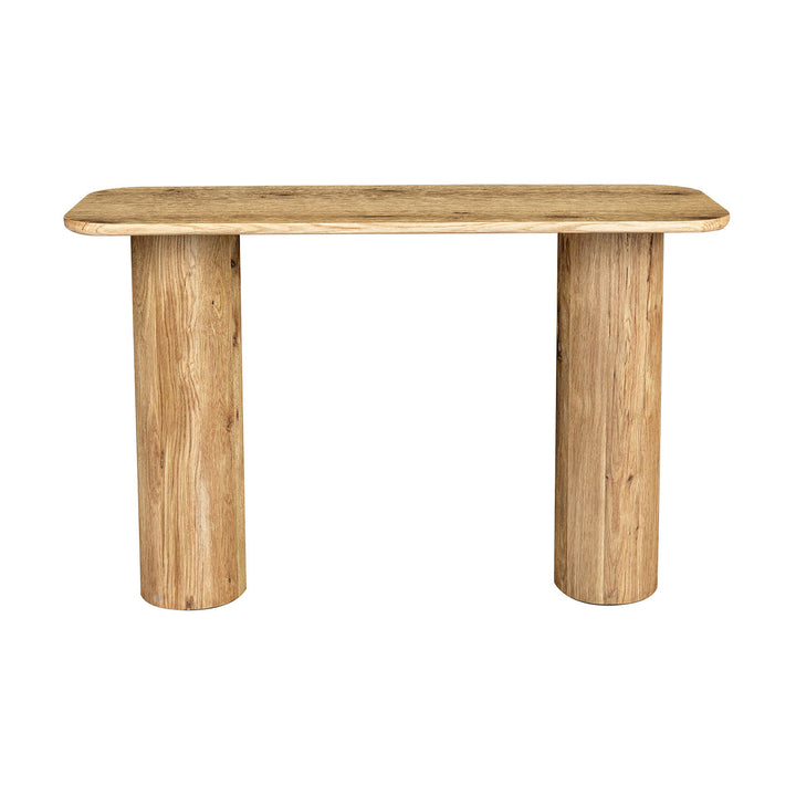 The Jasper Console combines style and function in its elegant and minimalist design. Crafted from oak, MDF, and oak veneer, this console showcases a natural wood grain texture that adds warmth to any room. Its light brown color and smooth finish make it a versatile piece that complements various decor styles. With an oval top and two cylindrical legs, it offers a unique yet simple design. Whether used in an entryway, living room, or hallway, the Jasper Console provides a perfect spot for decorative items or essentials. Its sturdy construction ensures durability, making it both a practical and stylish addition to your home.