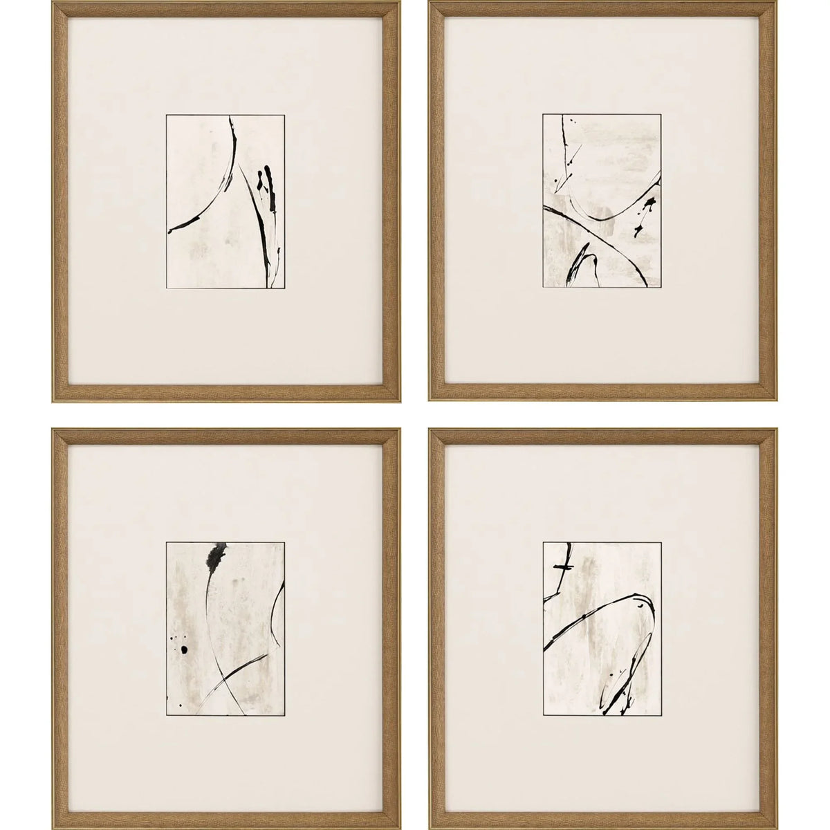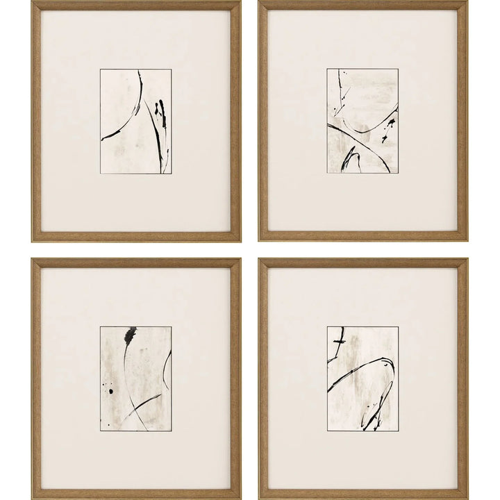 Elevate your living space with this exquisite four-piece art set. Each piece is a unique hand-painted creation, crafted on fine art paper and enclosed in a beautifully crafted antique gold wooden frame. The frame features an elegant embossed weave pattern that adds a touch of sophistication to any room. The minimalist lines and shapes within the artwork evoke a sense of calm and elegance, making them a perfect fit for contemporary interiors. With a sleek black design, these pieces offer a striking contrast against any wall color, adding depth and character to your home.