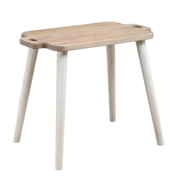 Recycled white pine makes this Juliet Side Table an eco-friendly choice for your home. With its brown and white hues, it blends effortlessly with various decor styles, providing a warm and welcoming touch. The table's top is skillfully crafted to resemble a vintage serving board, adding a unique character to your space. It's also designed with convenient handles, so moving it around is a breeze. Whether you place it in the living room or the bedroom, this table offers both style and functionality. This means you can enjoy a charming and practical piece that adapts to your needs.
