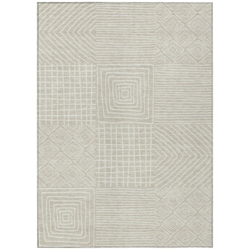 The Junia Beige Washable Rug brings a touch of elegance to any space with its intricate geometric design. Each square within the rug displays unique motifs, creating a visually appealing and cohesive look. Perfect for both indoor and outdoor settings, this rug is UV-stabilized to withstand exposure to sunlight, ensuring it retains its beauty over time. Its neutral beige color complements a wide range of decor styles, making it a versatile choice for any room or patio.