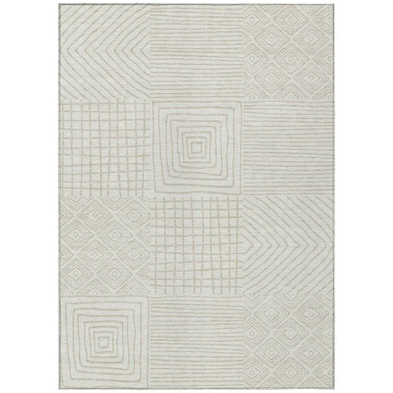 The Junia Ivory Washable Rug is a stylish and practical addition to any space. It features a unique collection of multi squares, each displaying distinct motifs within a seamless geometric design. This rug effortlessly blends with various decor styles, making it a versatile choice for any room. Perfect for both indoor and outdoor settings, its UV stabilization ensures lasting color and durability, even in sunlight. The ultra-thin design not only adds elegance but also allows for easy placement in high-traffic areas.