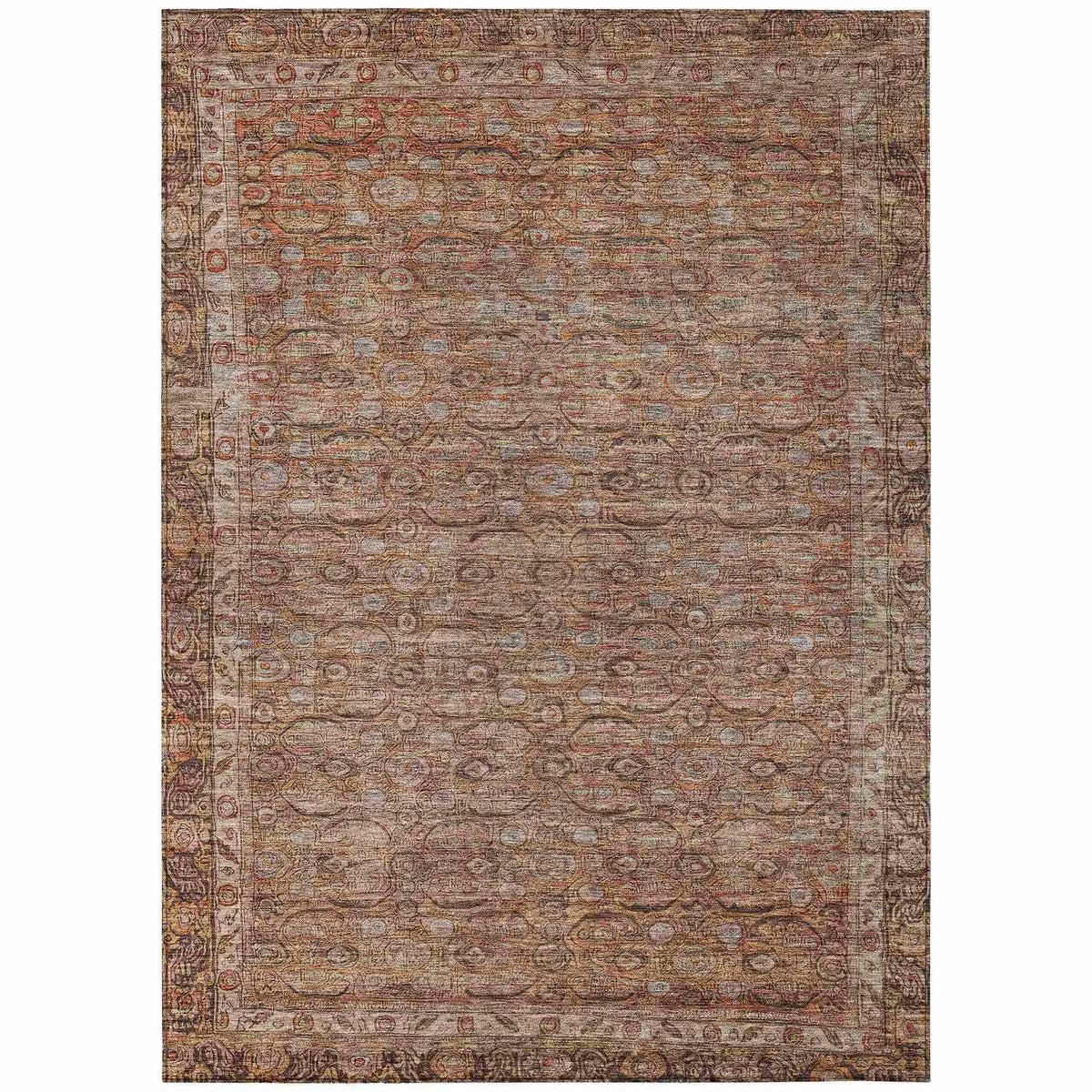 This rug is designed for those who appreciate the blend of elegance and practicality. Featuring intricate feather-like motifs, it offers a refined design that is both detailed and airy. The classic bordered pattern makes it a great addition to any room, bringing a touch of sophistication to your indoor or outdoor spaces. With its copper hue, it seamlessly complements various decor styles, adding warmth and charm wherever it is placed.