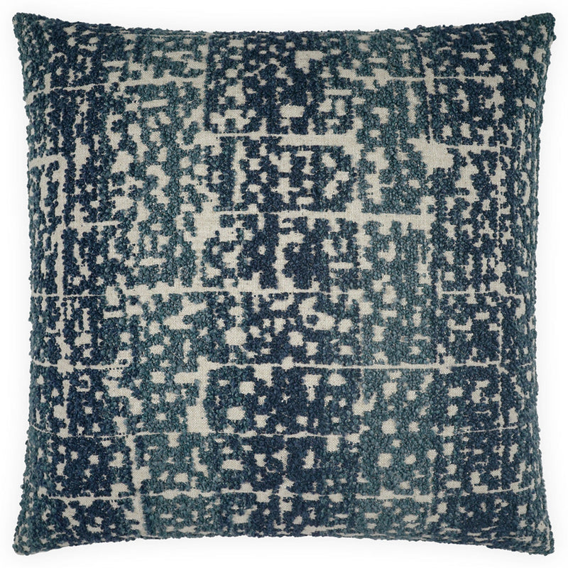 The Kakura Pillow adds a touch of elegance to any room with its rich teal and brown abstract pattern and textured fabric. Handcrafted in California, this pillow showcases a unique global style that's perfect for modern home decor. Its removable cover and insert make cleaning easy, while the hidden zipper ensures a sleek look. The pillow is made with a blend of viscose, acrylic, cotton, linen, and polyester, providing a soft yet durable feel. The back features a tan/taupe color that complements the blue front, making it a versatile piece for any setting.