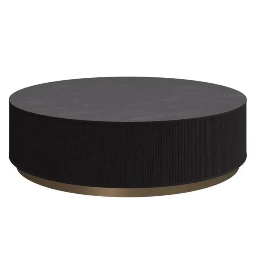 The Kalla Coffee Table brings form and function to life. Crafted with Charcoal and rustic wood oak veneer with vertical reeding. A brushed gold steel base finishes the look. As wood is an organic, porous material, these pieces will contain a natural variation of texture and may also exhibit fine indentations and cracks. Wood pieces will also display a disparity of color and grain, and visible knots and burls that add to the character of each piece.