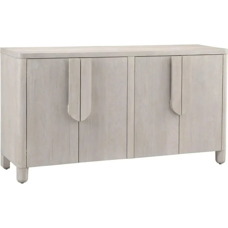 With four doors opening to two cabinets, each featuring an adjustable shelf and convenient media cable storage, this server is not only a beautiful piece but also a practical addition to your living space. Take organization and style to the next level with the Karina Server. Crafted from high-quality rubberwood and oak, this server offers not only elegance but also durability. Its minimalist design, soft curves, and versatile storage make it a must-have for your home. With four doors and adjustable shelves, it's perfect for storing all of your media and more. Elevate your decor and functionality with the Karina Server today!