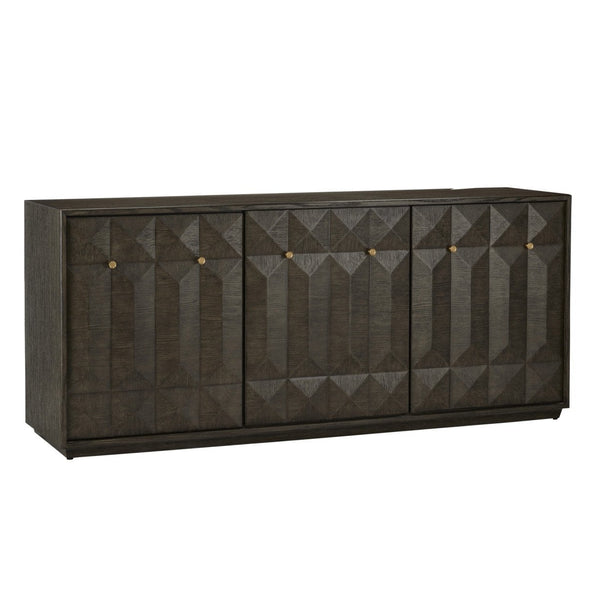 - Geometric Faceted Doors -- The angular peaks and valleys across the door fronts create dramatic shadow play that changes throughout the day as light moves across the room. This sculptural element transforms the credenza from simple storage into a functional art piece that adds architectural interest to flat wall spaces.