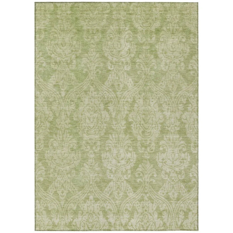Krymera Green Washable Rug Elegant Damask Design Features: