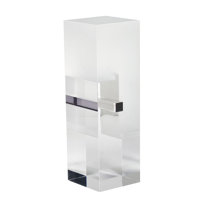 Inspired by traditional Japanese Kumiki puzzles, this large-scale sculpture transforms intricate interlocking forms into a mesmerizing statement piece. Made from acrylic, it showcases a dynamic mix of clear, frosted, and smoke-toned finishes. The sculpture highlights the precision of each connection, creating a captivating visual appeal. Both architectural and enigmatic, it invites curiosity and elevates any space with its sculptural sophistication. The Kumiki Pin Sculpture is perfect for those who appreciate the blend of art and architecture, making it a striking addition to any home or office. Its unique design ensures it stands out as a conversation starter.