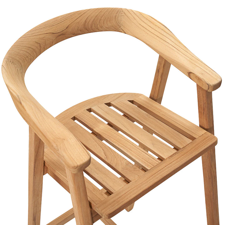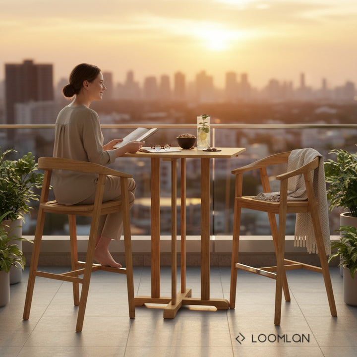 The La Costa square Bar Dining Set brings a touch of mid-century charm to any outdoor space. Made from high-quality teak wood, this set includes a bar-height table and two armchairs, offering elegance and comfort. The table's sleek design, combined with the gently curved armchairs, creates a welcoming setting perfect for intimate gatherings. Whether placed on a small balcony or beside a pool, this set is designed to enhance outdoor living with style and grace.