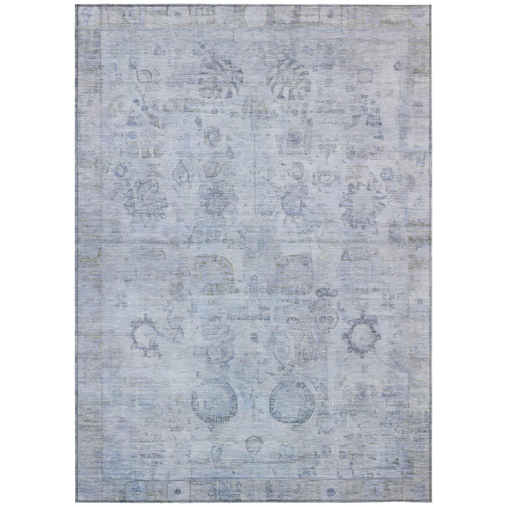 Featuring a stunning blend of global motifs and a distressed border, this rug offers a unique mix of intricate detail and rustic charm. Its weathered border adds texture and a sense of history, making it an ideal addition to spaces that combine modern elements with traditional warmth. The Laeanor Blue Washable Rug is designed for both indoor and outdoor use, thanks to its UV-stabilized material that withstands sunlight while maintaining its vibrant blue color.