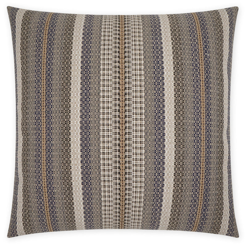The Lalam Pillow brings a touch of Western chic to any space. This pillow is a perfect blend of style and comfort with its handcrafted design. Featuring a beautiful striped pattern with vertical lines in shades of beige, brown, navy, and tan, it adds a rustic charm to your decor. Made from a mix of post-industrial cotton, polyester, wool, and nylon, its textured fabric is both eco-friendly and durable. The removable cover and insert, filled with 95% feather and 5% down, ensure easy cleaning and long-lasting coziness. A hidden zipper keeps the look sleek and neat. Handcrafted in California, each pillow is hand cut and sewn to order, ensuring quality and care in every piece.