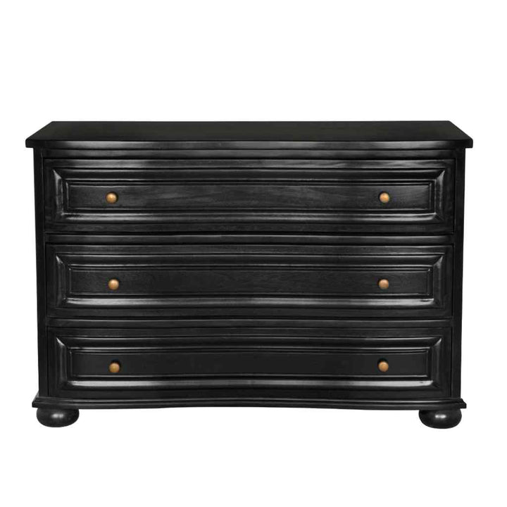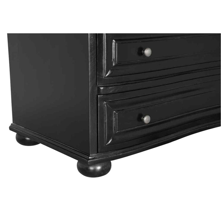 The Lauren Dresser in hand-rubbed black is a perfect blend of elegance and function. Crafted from mahogany wood and finished with a deep, rich black, it brings a touch of timeless beauty to any bedroom. The brass accents add a hint of sophistication, creating an eye-catching contrast with the dark finish. This dresser is designed with graceful proportions that fit seamlessly into both classic and modern settings. It offers ample storage with multiple drawers, making it both a practical and stylish addition to your home. The Lauren Dresser is a quiet statement of luxury, promising to enhance your space with its refined charm.