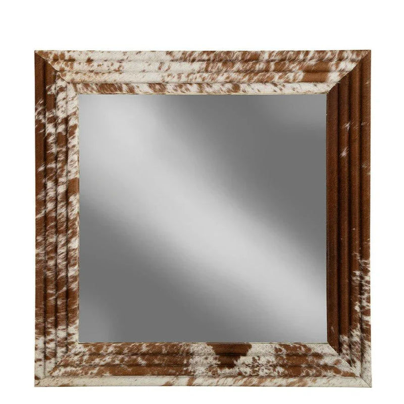 The Laverne Mirror brings a touch of rustic elegance to any space with its distinctive design. Crafted with a fluted wood frame wrapped in hair-on-hide, this mirror showcases a unique blend of warm brown and white patterns, ensuring each piece is one-of-a-kind. Its compact size makes it an ideal choice for adding character to smaller spaces, effortlessly complementing rustic or eclectic interiors.