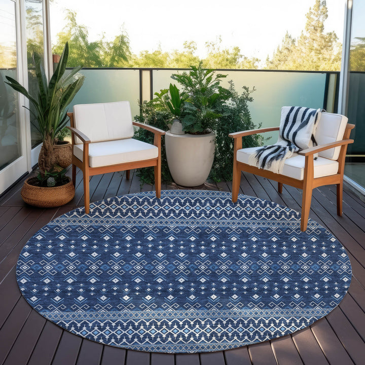 Step into a world of comfort and style with this charming boho chic rug. Featuring a delicate diamond pattern, it brings a touch of elegance to any space, whether indoors or outdoors. Engineered with UV protection, this rug is perfect for sunny days in the backyard or cozy gatherings in the living room. The ultra-thin design and non-slip backing ensure safety and convenience, while the machine-washable polyester fabric makes it a practical choice for busy households with kids and pets. Enjoy a blend of beauty and functionality with this versatile Lazy Rivers Blue Washable UV-Protected Rug.