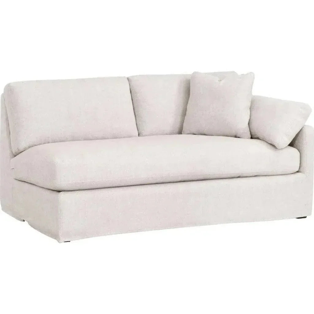 Design your ideal sofa with the Lena Modular Slipcover 2-Seat Right Slope Arm Sofa. Our handcrafted 8-way hand tied suspension and poly/down blend cushions offer unparalleled comfort. Each piece features an undermount metal snap to prevent sliding and gaps, while the neutral yet sophisticated bisque-colored fabric effortlessly blends with any decor. Embrace the timeless elegance of our natural materials and unique dye lot variations. With the option to purchase each piece separately, you can create a tailor-made sofa to perfectly fit your space. This 2-Seat Right Arm Sofa exudes luxury with its plush cushions and meticulous construction. Elevate your space with the sophisticated touch of this modular sofa. Our exclusive fabric finishes, made with natural materials, add a touch of individuality and quality to this stunning piece.