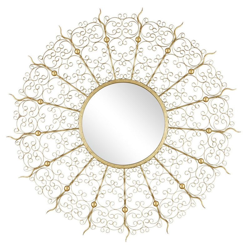 Levain Round Mirror With Ornate Gold Sunburst Frame Features: