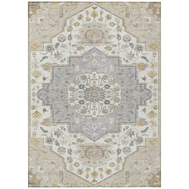 Step into sophistication with this stunning area rug, featuring a traditional and vintage large center medallion reminiscent of classic oriental designs. Crafted with precision, this rug seamlessly blends traditional charm with modern convenience. Its ultra-thin construction adds a touch of elegance to your decor, allowing for versatile placement in any room. This rug is engineered with UV stabilization, making it perfect for both indoor and outdoor use, ensuring its vibrant colors remain intact over time.