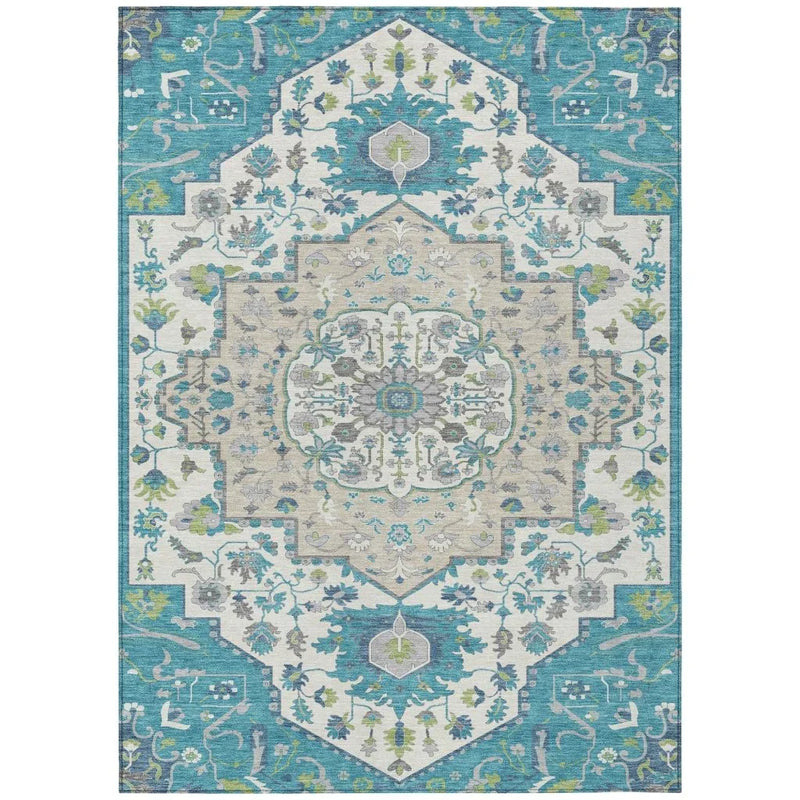 Lidia Teal Washable Rug UV-Stabilized for Indoors-Outdoors Features: