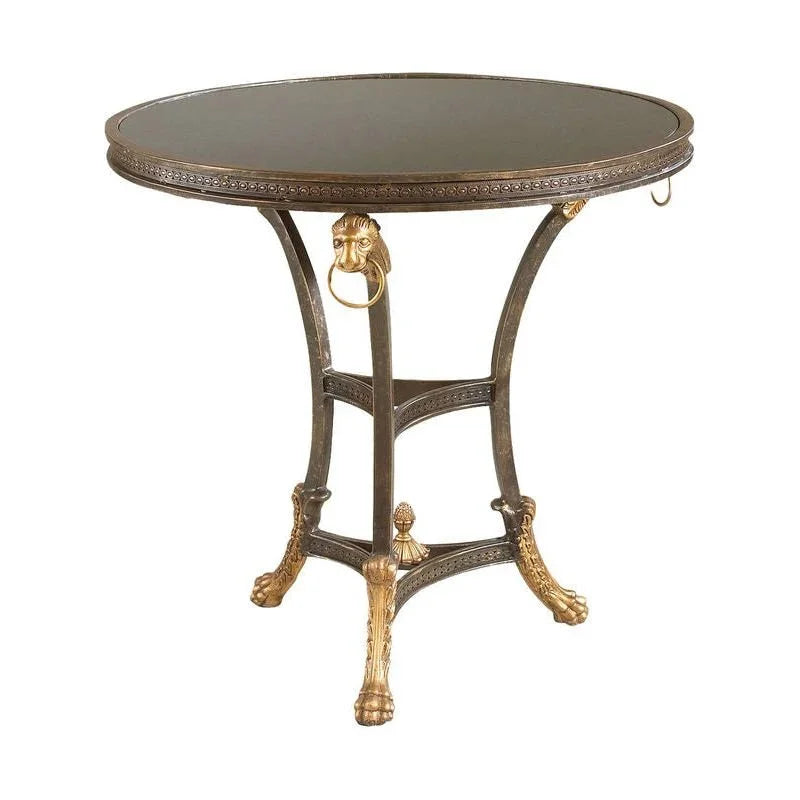 Transform your living space with the exquisite Lions Head Center Table. This piece features a stunning black granite top that adds an element of sophistication to any room. Its dark tabletop provides a striking contrast with the ornate gold legs, making it a perfect centerpiece. The table's vintage style is enhanced by intricate lion head accents, which lend an air of grandeur and elegance to your decor. Beyond its visual appeal, this table is crafted for durability and style. The ring details and claw feet not only add to the table's aesthetic charm but also provide stable support. Part of the Chelsea House Misc collection, this table is a timeless addition that complements a variety of interior styles.