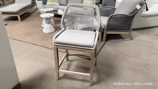 Loom Outdoor Counter Stool Taupe and White Flat Rope, Pumice, Gray Teak Features: