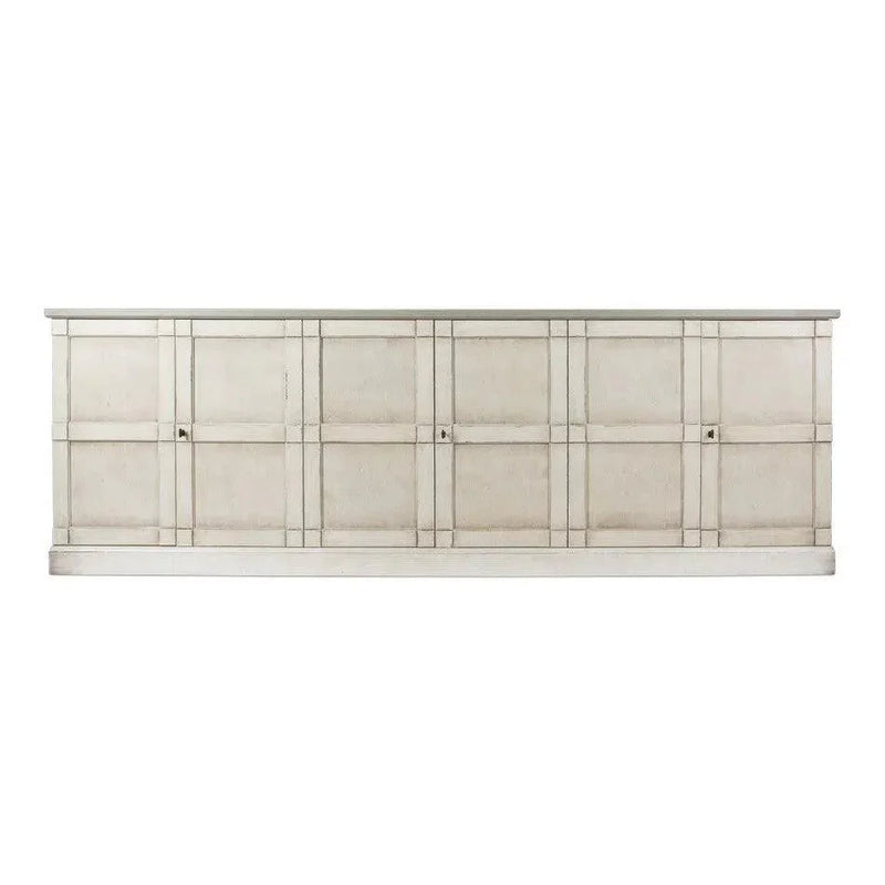 This Luciana buffet offers a transitional design with a white case and granite countertop. Behind six recessed panel doors adorned with bin pulls, three adjustable shelves provide ample storage space. The recycled Wood has been beautifully distressed by hand, showcasing its authentic imperfections from its previous life. With expert design and craftsmanship, this buffet merges style and function.