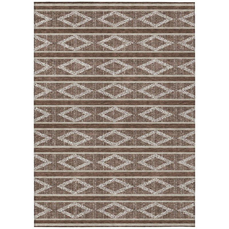 The Lume Brown Washable Rug offers a mix of style and practicality, making it a great addition to any home. With its stripe design featuring a subtle diamond pattern, it effortlessly blends with both modern and classic decor. This rug is made from polyester, providing a smooth yet durable surface that is easy to maintain. Its brown color adds a warm touch to any space, enhancing the overall ambiance. This rug is designed for versatility and can be used indoors or outdoors, making it perfect for any setting.