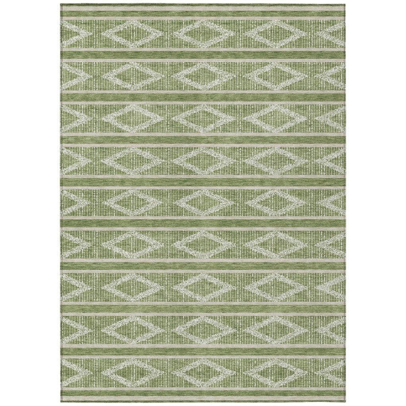 Enhance your living space with the Lume Green Washable Indoor-Outdoor Rug. This rug features a striking design with stripes and a subtle diamond pattern that adds a touch of geometric charm to any room. Whether you have a contemporary or traditional setting, this rug seamlessly complements your style while providing a fresh, modern look. Its green color offers a soothing aesthetic, perfect for creating a calm and inviting atmosphere in your home.