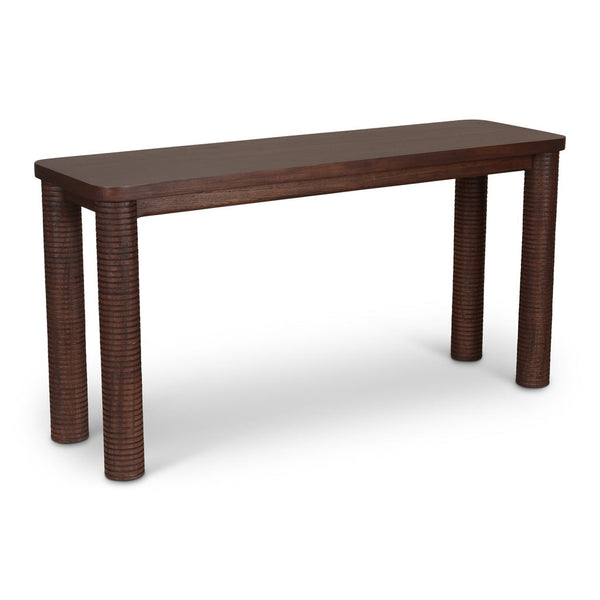 When you need a console table that can handle both decorative display and practical storage without eating up precious floor space, most options force you to choose between style and substance. The Urbia Luna Wooden Rectangular Console Table is a 59-inch Mid-Century Modern console table built for versatile placement behind sofas or in entryways, available at LOOMLAN with free shipping to the continental US. This piece solves the common dilemma of finding furniture that's both architecturally interesting and functionally sound. Crafted from solid Mindi wood with distinctive textured column legs, the Luna stands out from typical flat-leg designs while maintaining the clean lines that make console tables so versatile. The generous 59-inch width provides ample surface area for lamps, books, and decorative objects, while the 17.75-inch depth keeps the footprint manageable for tight spaces.