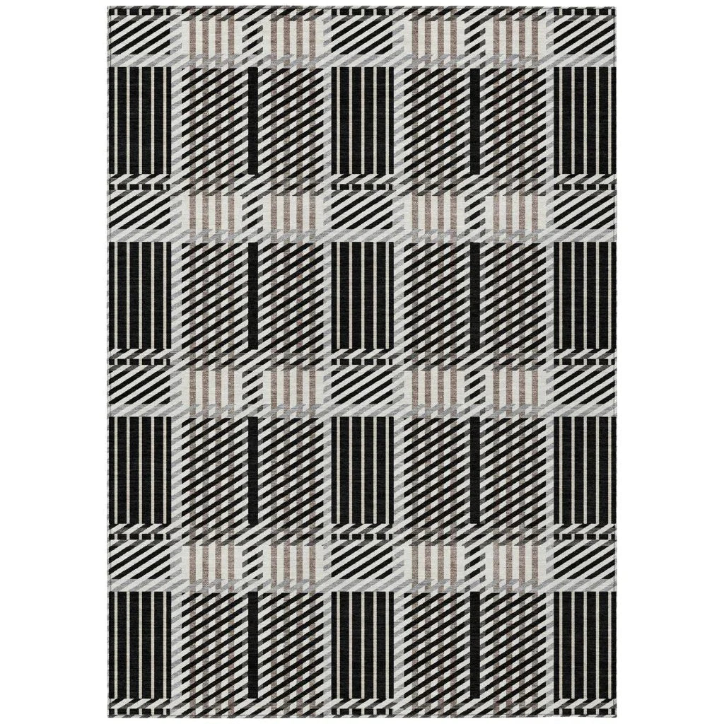 Elevate your living space with a rug that blends style and practicality. This area rug features a sophisticated plaid pattern, adding a touch of elegance to any setting. Whether you place it in your living room, patio, or any other space, its transitional style seamlessly fits in. The black color enhances its versatility, making it suitable for various decor themes. Crafted from durable polyester, this rug is designed for longevity and resilience. The UV stabilization ensures that the vibrant pattern remains intact, even when used outdoors. It's the ideal choice for homes with families and pets, thanks to its family-friendly design.