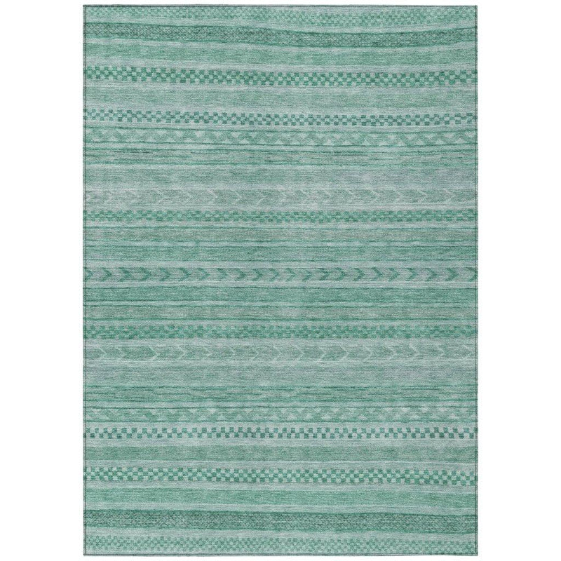 The Luthyra Turquoise Washable Indoor-Outdoor Rug brings a touch of elegance to any area with its rich stripe pattern. This transitional piece, with its horizontal motifs, adds a sophisticated feel, fitting seamlessly into any decor. Made from durable polyester, the rug is designed to withstand the elements, making it an excellent choice for both indoor and outdoor settings. Its vibrant turquoise color remains eye-catching, thanks to UV stabilization that helps maintain its look even in sunny spots. Ideal for families and those with pets, this rug combines style with practicality.