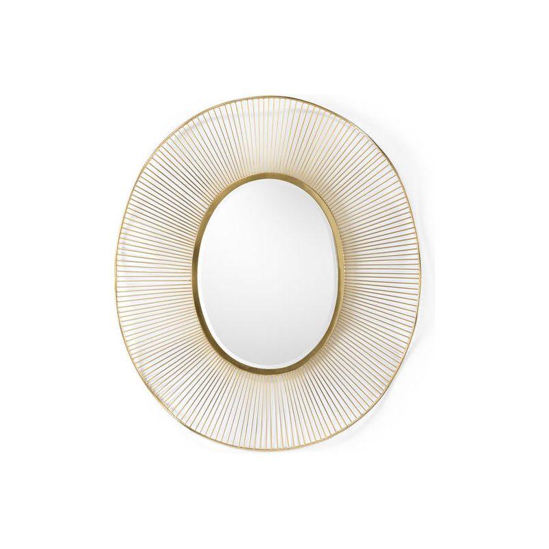 Add dimension and warmth to your home with the Luton Mirror. This abstract sunburst design offers a plated brass finish on a sturdy iron frame, featuring an oval mirror that reflects light beautifully. The soft, rounded edges add a touch of elegance, making it an excellent choice for those who appreciate contemporary design. Whether it's in the living area or the entryway, this mirror helps to brighten the space and convey a light and airy aesthetic that complements any decor style. The gold color of the Luton Mirror adds a touch of luxury and sophistication to any room. The radial metal lines of the sunburst frame create a stunning focal point, drawing the eye and adding artistic flair.