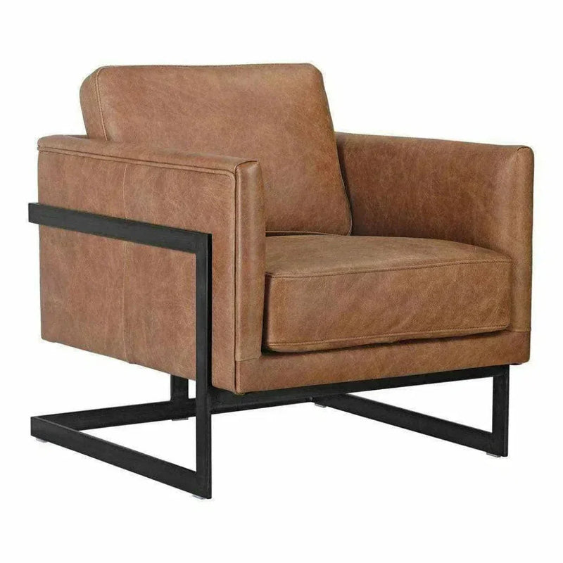 Provide additional seating and to create eye-catching focal points in any room with . This stunning chair will be very easy. This chair will complement the other furniture in the room, while standing out as its own unique piece. Experience ultimate elegance and luxury with Luxley Brown Tan Leather Club Chair by Moe's Home Collection Furniture. This modern accent chair seamlessly blends comfort and functionality in a simplistic, yet stylish form. Its fully upholstered, neutral top-grain leather and deeply comfortable seat, combined with a semi-cantilevered frame design, make it perfect for any occasion. With its clean lines and statement aesthetic, this chair is sure to add a touch of sophistication to your reading corner or social environment..