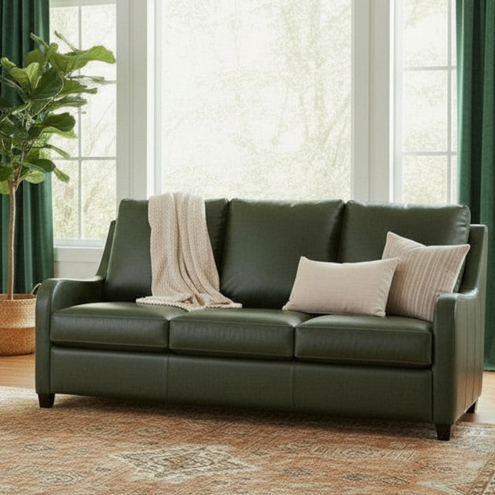 The Luxora Luxury Leather Sofa With Power Motion Comfort offers a perfect blend of style and relaxation. Made with premium top-grain leather, this sofa ensures both durability and elegance. The solid hardwood frame provides robust support, while the ultra-smooth, low-noise motor allows for effortless adjustments. With seating for three, it comes with a standard articulating power headrest, giving you the comfort you need at the touch of a button. Its customizable back style lets you choose between solid or split bustle back pillows. For added convenience, there's an optional built-in USB charging port, making it easy to charge your devices while you unwind.