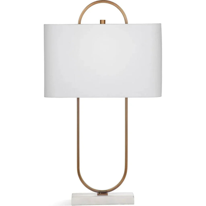 The Mabel Table lap is made from metal and finished in antique brass on a marble base. It is paired with a white linen rectangle shade. "Bring boldness to any corner of your home with this striking metal and marble table lamp. The antique brass finish adds a touch of vintage charm, while the white linen rectangle shade creates a warm, inviting glow.