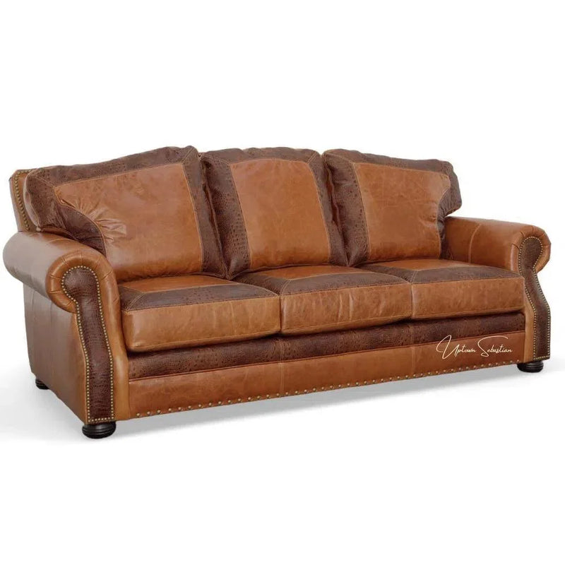 Western Style Leather Couch With Brown Alligator Embossed Leather Features:
