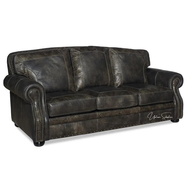 Western Style Leather Couch With Grey Alligator Embossed Leather Features: