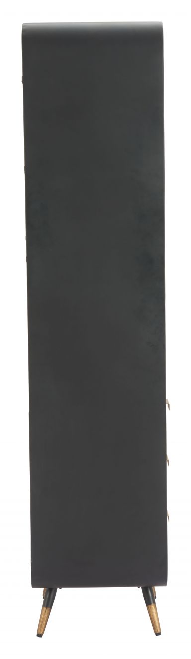 The Magara Bar Cabinet in Black is a stylish and practical addition to any home. Crafted with fir wood, MDF, mirror glass, and steel, this cabinet offers a sleek and modern look that fits perfectly in any space. Whether you are hosting a party or just need extra storage, this bar cabinet provides ample space for your needs. Its black finish adds a touch of elegance, making it suitable for both casual and formal settings. With its modern design, this cabinet is not only functional but also a stunning piece that enhances the beauty of your home.