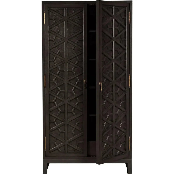 Expertly crafted from premium mahogany and veneer, the Maharadscha Carved Mahogany Small Hutch combines traditional artistry with modern design. Featuring intricate hand-carved details and a sturdy industrial steel base, this piece stands out in any contemporary setting. Available in a burnished mahogany finish or a solid white color paired with a matte black base, each variant offers both aesthetic appeal and functional storage. Towering at eight and a half feet, this elegant hutch delivers a commanding presence and practical organization, making it an essential addition for refined interiors seeking timeless craftsmanship and style.