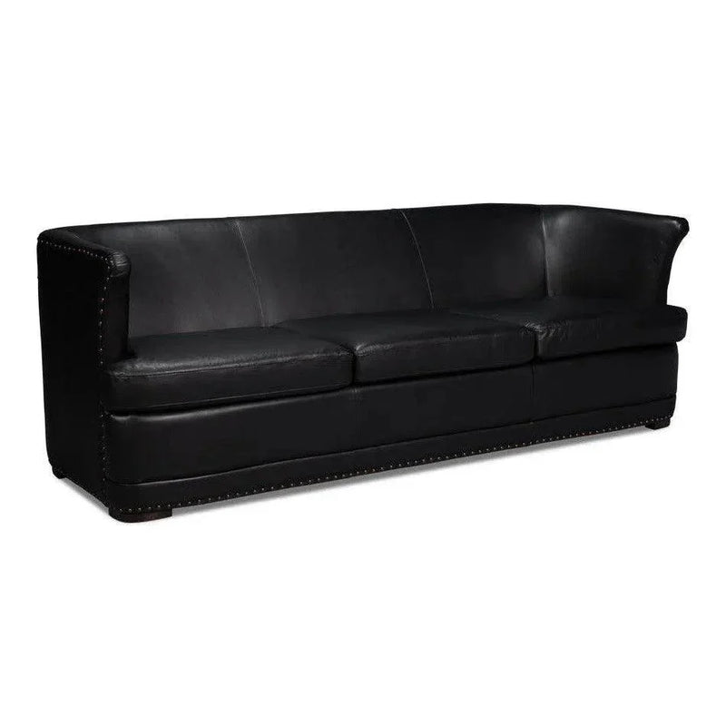 Mcmillan Distilled Wood & Leather Black Sofa - LOOMLAN - Sarreid - Sofas & Loveseats
