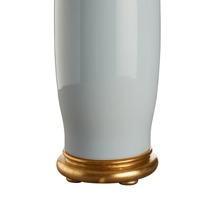 The Melanie Lamp Sleepy Hollow Luxurious Ceramic Design stands out with its soothing colors and minimalist shape. This lamp features a smooth ceramic body paired with an elegant gold base, offering a perfect balance of modern style and timeless charm. The white fabric shade, with its wide top and bottom, adds a soft touch to the overall design. Designed by Jamie Merida, this lamp is crafted to provide an elegant lighting solution for any space. Its stylish appearance and quality construction make it a versatile addition to both contemporary and traditional settings.