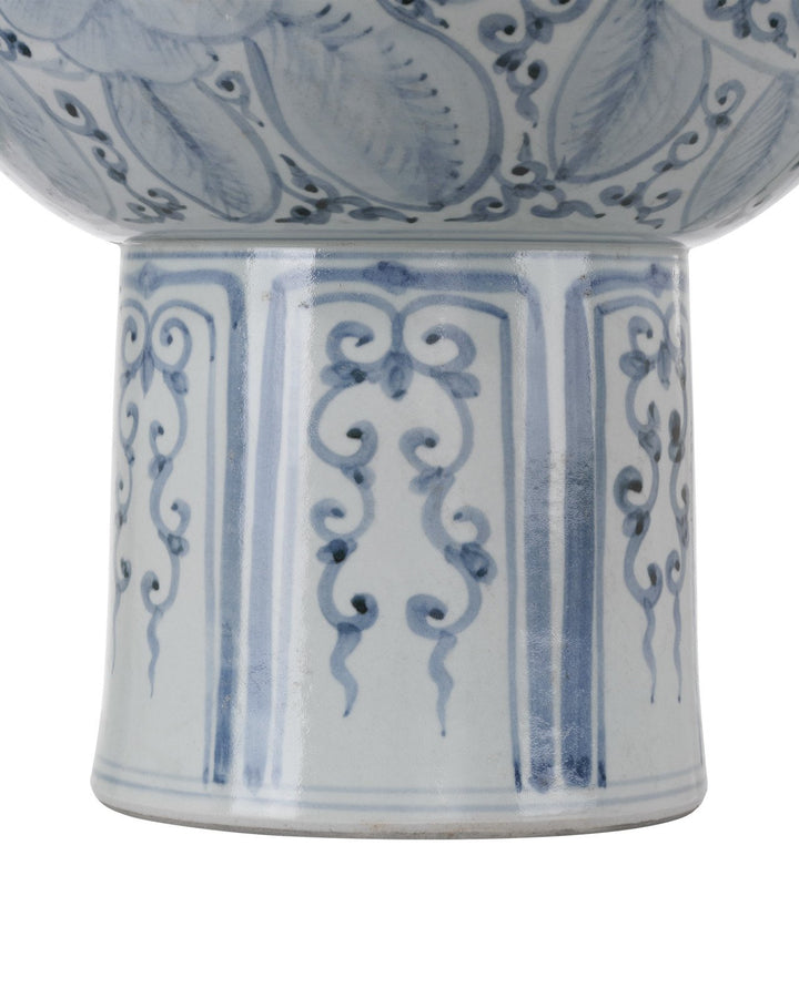 The Ming Offering Pedestal Bowl is crafted from high-quality porcelain, ensuring durability and a lasting impression. Its blue and white color scheme offers a fresh and calming aesthetic that complements various styles. The intricate patterns and traditional design make it a conversation starter, while its ample size allows for various decorative uses. Whether you use it to display fruits, flowers, or simply as an elegant stand-alone piece, it is sure to elevate the ambiance of your space.
