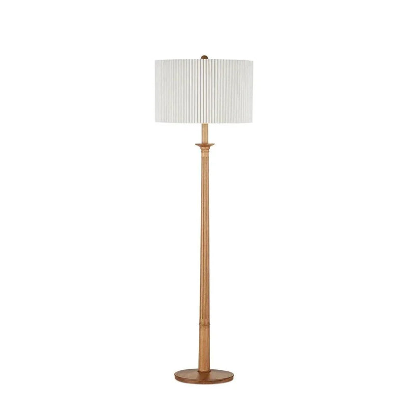 Made from turned wood, the Mitford Floor Lamp has a classic profile that was inspired by a traditional column design. Tom Caldwell envisioned the tan floor lamp with its refined Italian feel. By topping the thin floor lamp with a knife-pleated bone linen shade, he echoed the delineations in the wood lamp's body and made a wonderfully textural accent piece for an interior. The perfect blend of classic and modern design, the Mitford Floor Lamp adds an elegant and refined touch to any room. Crafted from turned wood and topped with a knife-pleated bone linen shade, it's a sophisticated and textural accent piece that will elevate the aesthetic of any interior. Created with inspiration from traditional column designs and a touch of refined Italian style, this lamp is a beautiful statement piece that adds both function and style to your home.
