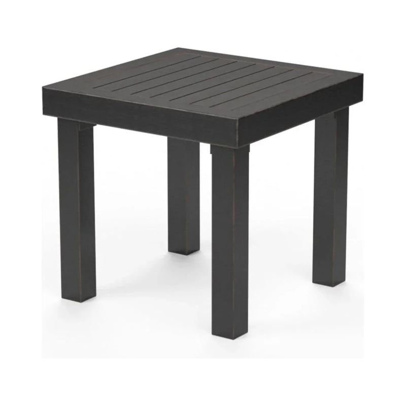 The Monterey End Table adds a touch of elegance to any outdoor space with its sleek design and robust construction. Crafted from durable aluminum, it boasts an Old World Copper finish that exudes a timeless charm. The table's fully welded frame ensures strength and durability, making it a reliable choice for both residential and commercial settings. Its minimalist style, featuring a compact design with a slatted tabletop and four straight legs, effortlessly complements various outdoor decor themes. Whether placed beside a lounge chair or a sofa, this end table serves as a perfect spot for your drinks, books, or decorative items.